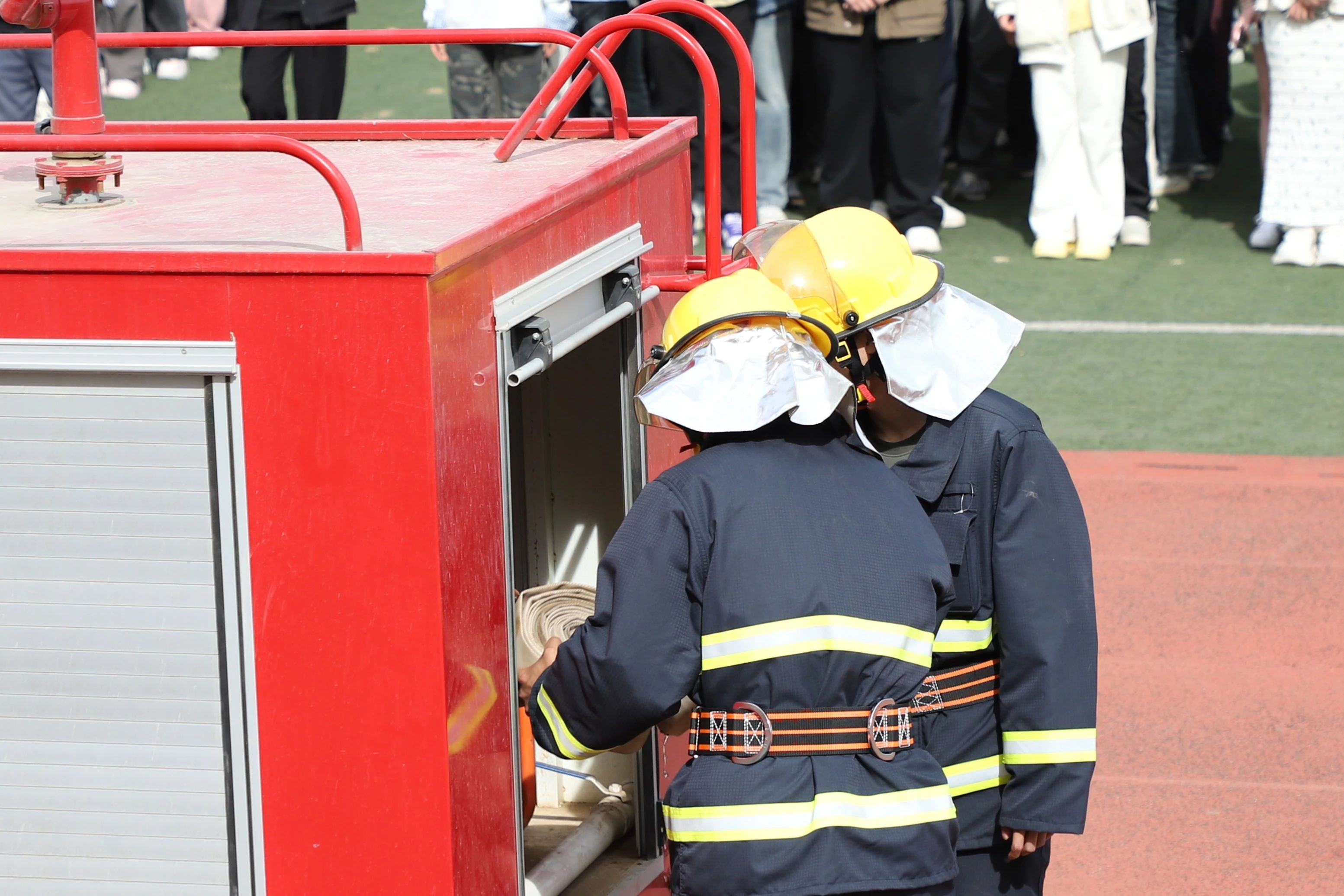 人员疏散完毕,消防技能实操紧接着展开。专业人员现场演示灭火器、消防栓的正确使用方法,细致讲解不同火源的应对策略。随后,同学们踊跃参与实操,在指导下,成功扑灭燃烧着的火源,在实践中切实掌握了灭火技巧 。