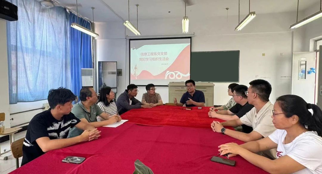 信息工程系党支部围绕《中国共产党纪律处分条例》和《中国共产党党员网络行为规定》展开了学习。党支部书记强调,全体党员要实实在在学,认认真真学,确保读懂读透文件;要将党纪党规牢记脑海里,明确党员的底线和红线;要把党规党纪刻印在心,用党规党纪校正言行;学以践行,每位党员都要心中有党、心中有戒尺,以严明的纪律要求自己。