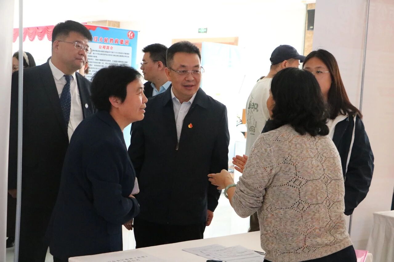 在一家知名企业展位前,校领导欣喜地发现该企业的招聘代表是学院往届毕业生。校领导亲切询问了她的工作近况,并对她重返母校参与人才选拔表示欣慰,希望她能以学长学姐的身份为学弟学妹们提供更多职场建议和发展机会。