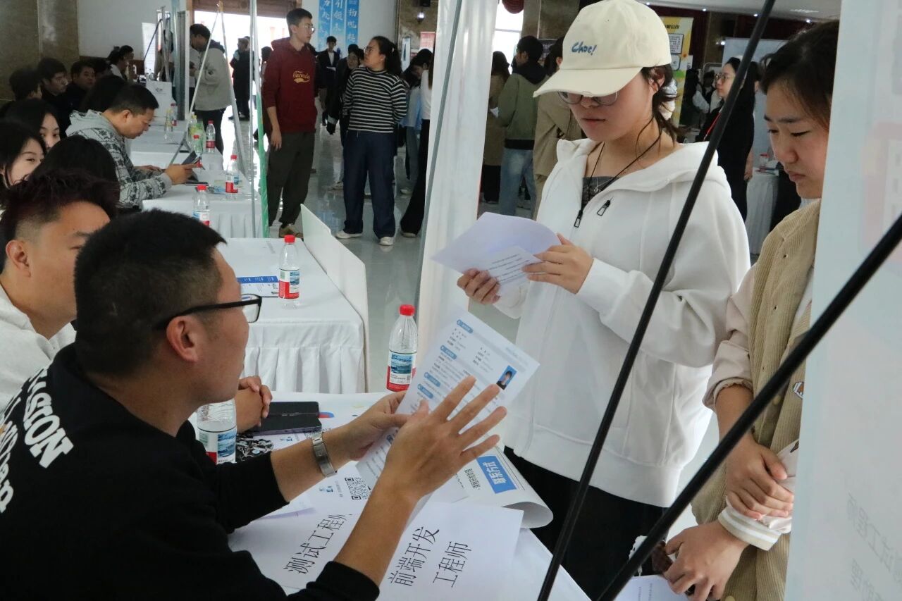 双选会现场暖意与活力交织,各行业展位前人流涌动,气氛热烈而有序。同学们手持精心打磨的简历,结合自身专业背景与实习经历,向用人单位的招聘人员清晰表达职业意向,积极参与现场面试。用人单位的招聘人员不仅向其详细讲解工作内容、薪资结构与职业晋升路径,还结合岗位需求细致询问同学们的专业技能掌握程度、实践经历及职业规划,双方在高效沟通中推进人才筛选与职业选择,整个现场既充满求职的紧迫感,又洋溢着双向奔赴的积极氛围。