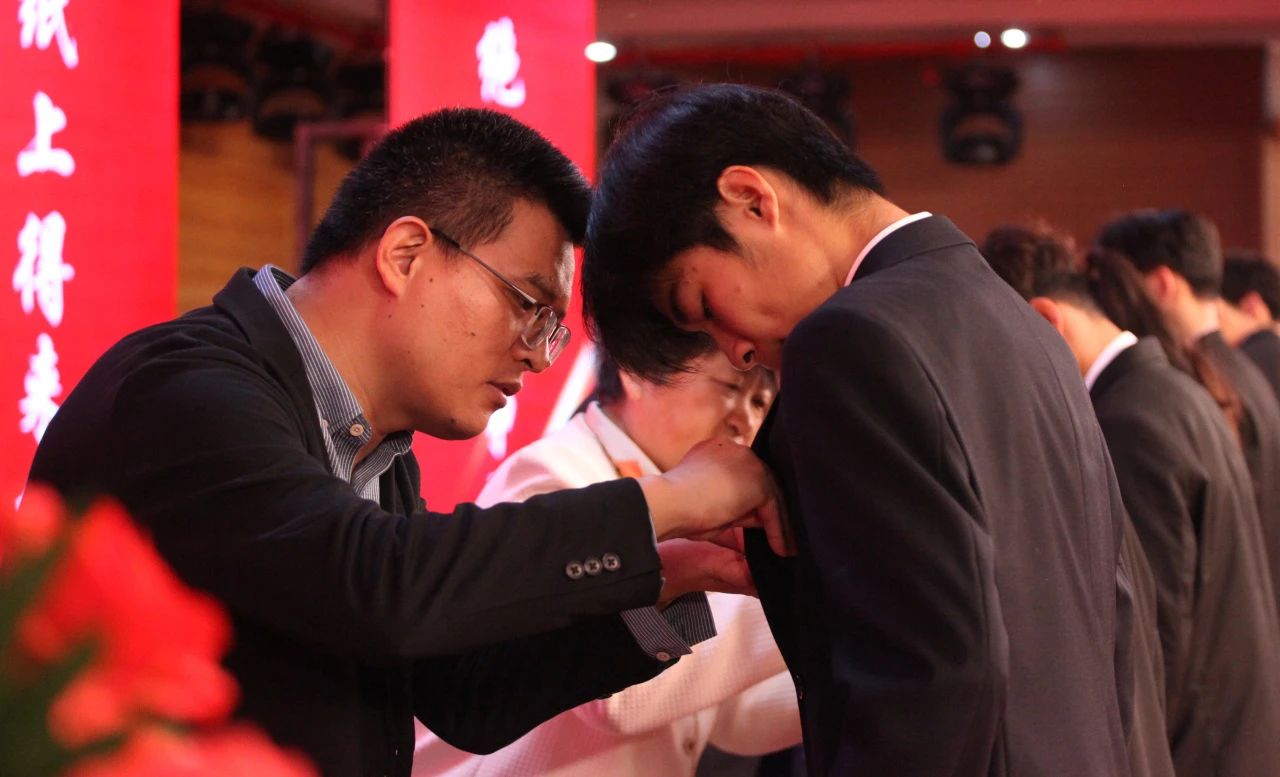 与会嘉宾及领导为新生代表佩戴校徽,全体新生起立共同佩戴校徽。校徽是“北经济精神”的凝聚,是“北经济品格”的展现,是 “北经人”的身份象征,也是北经人薪火相传的精神共鸣、赓续奋斗的精神标识,承载着北经人的荣耀和使命。