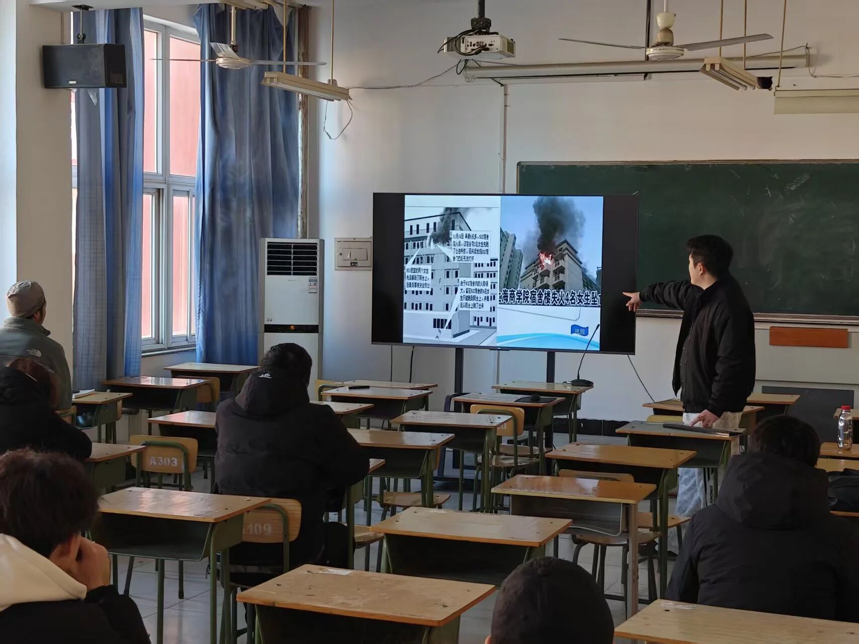 在消防安全教育环节,各班班主任结合近期“香港大埔”典型火灾案例,用触目惊心的图片和视频,直观展示了火灾的危害性与突发性。通过详细讲解火灾报警流程、初期火灾扑救方法、灭火器正确使用步骤及火场逃生技巧,让同学们掌握“小火快逃、大火固守”的核心原则。