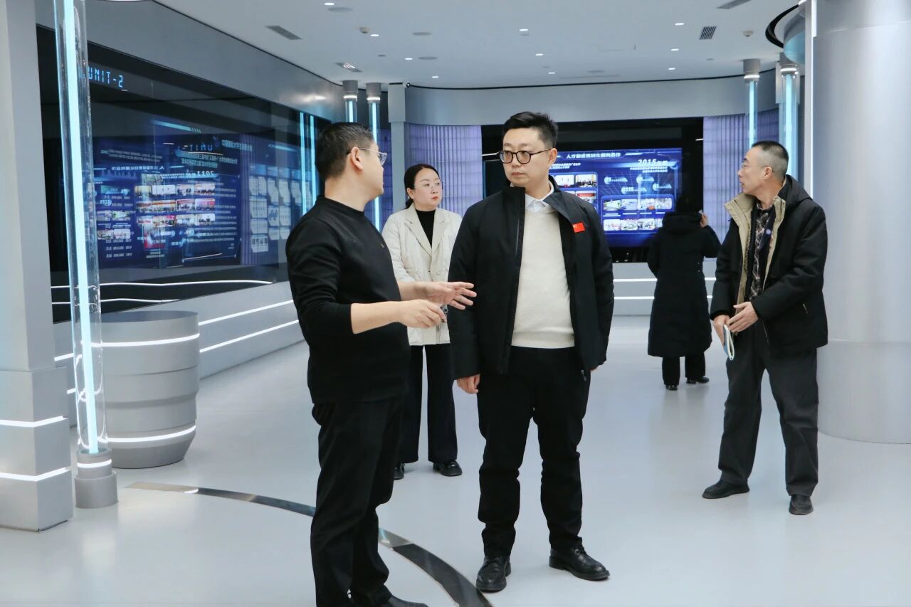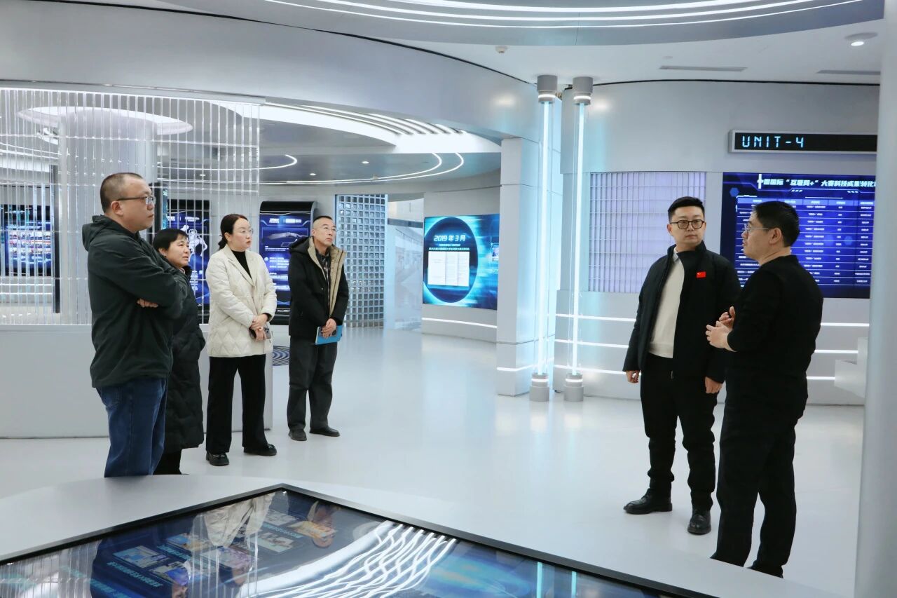 程建华董事长对周川院长来访表示热烈欢迎,张光华副主任陪同学院来宾参观产业赋能中心并亲自进行介绍讲解。