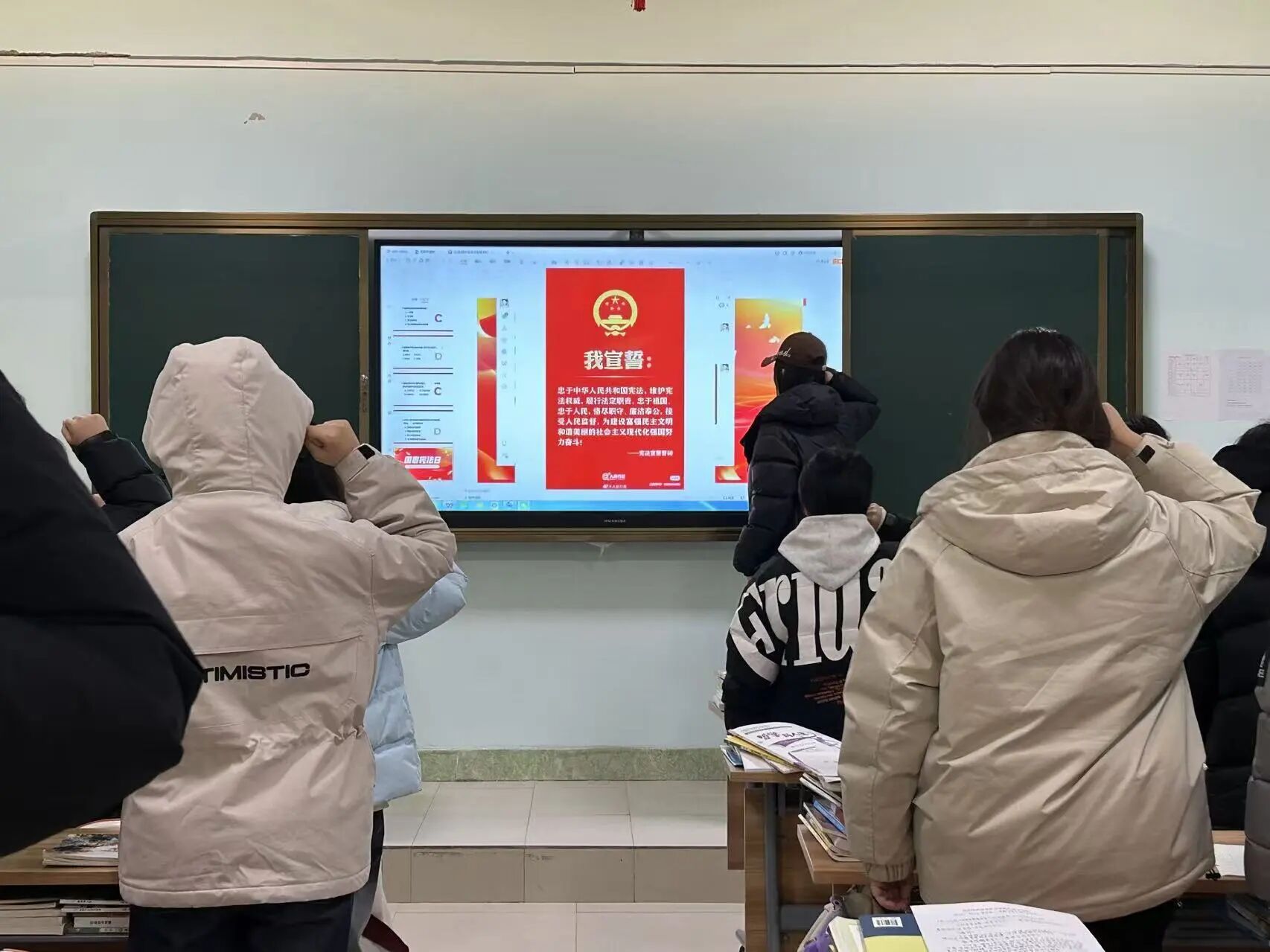 12月4日,学生处组织部分学生集中收看了教育部主办的“宪法晨读”活动直播。跟随直播流程进行宪法条文诵读,感受庄严的仪式感。清晰的宣读声回荡在教室中,展现了青年学子对宪法的崇高敬意。