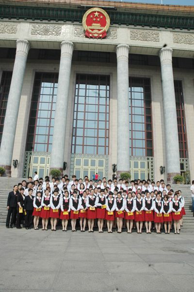 首映式结束后,师生们还饶有兴致的参观了人民大会堂金色大厅并合影留念。