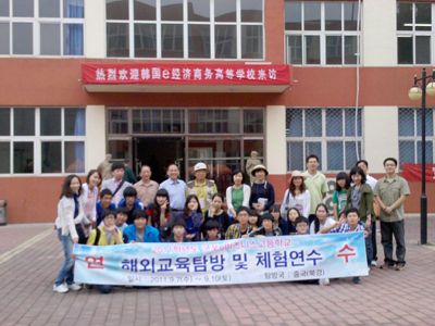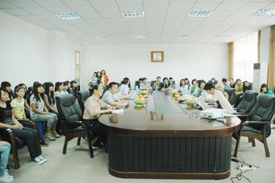 本网讯 9月8日,韩国e经济商务高等学校李校长一行30人到学院访问,学院董事 长、院长周宏,教务处处长何慕增、实训中心主任赵文武、外语系副主任李润坤、团委专职干部顾毅及我院青年学生代表30余人在会议室会见了韩国客人,并与他 们进行了友好会谈。活动仪式由院长办公室负责人姬世祥主持。