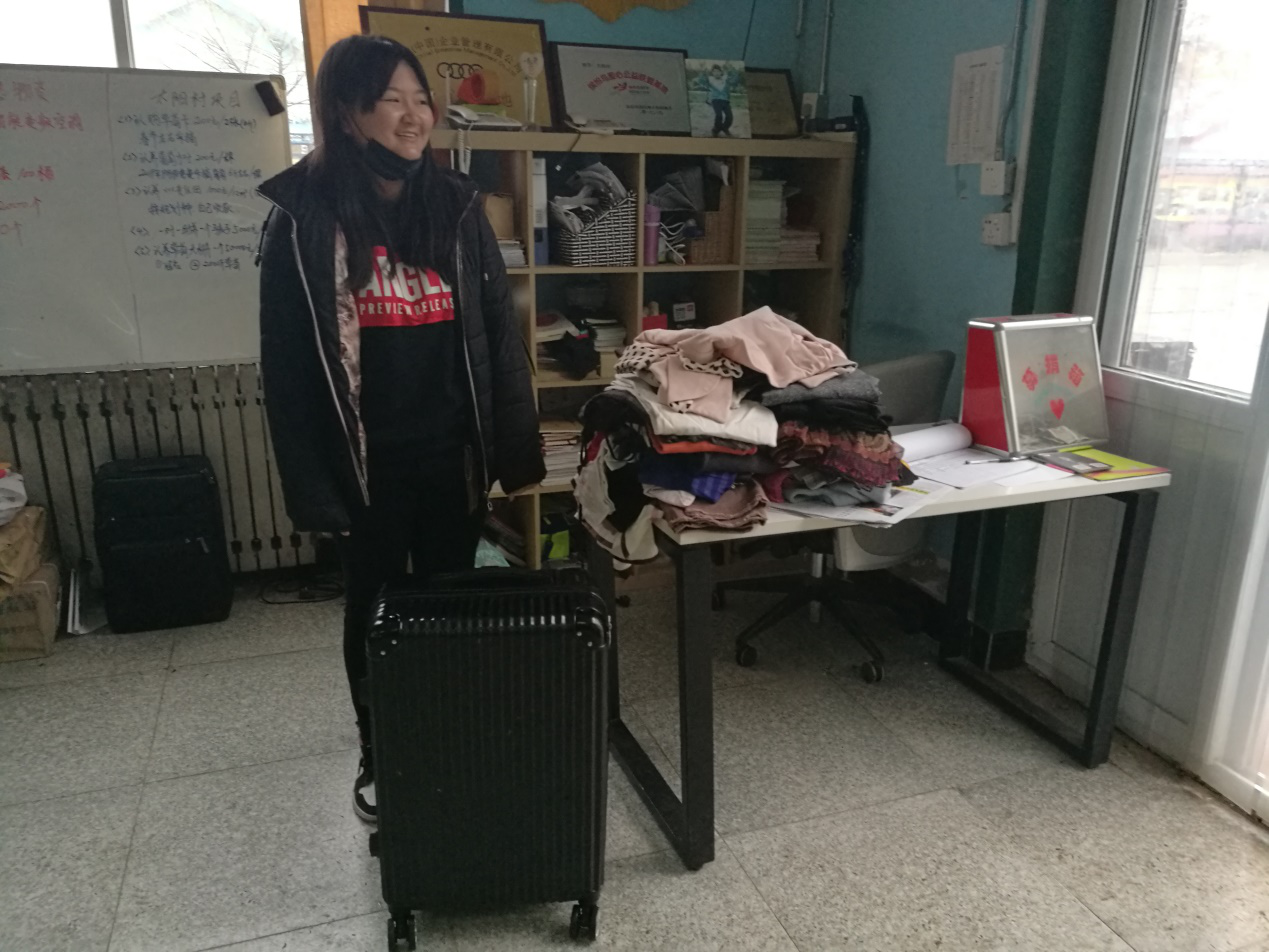 我们的志愿者付子怡同学,特意从家收拾了一大皮箱衣服,在本周课程结束后,捐赠给了太阳村的孩子们。同时还希望等自己以后工作了,多挣些钱捐赠。