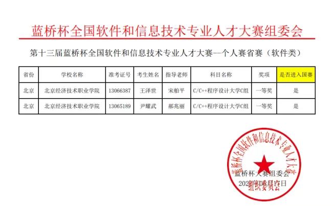 2022年4月9日,由工业和信息化部人才交流中心主办的第十三届蓝桥杯全国软件和信息技术专业人才大赛个人赛省赛已顺利结束,来自全国32个省市自治区1600多所高校的13万余名选手报名参加了个人赛的角逐。软件类省赛获奖名单现已公布,其中一等奖获奖选手将入围全国总决赛。其中信息工程学院,王泽世,尹耀武两名学生获得省赛一等奖。
