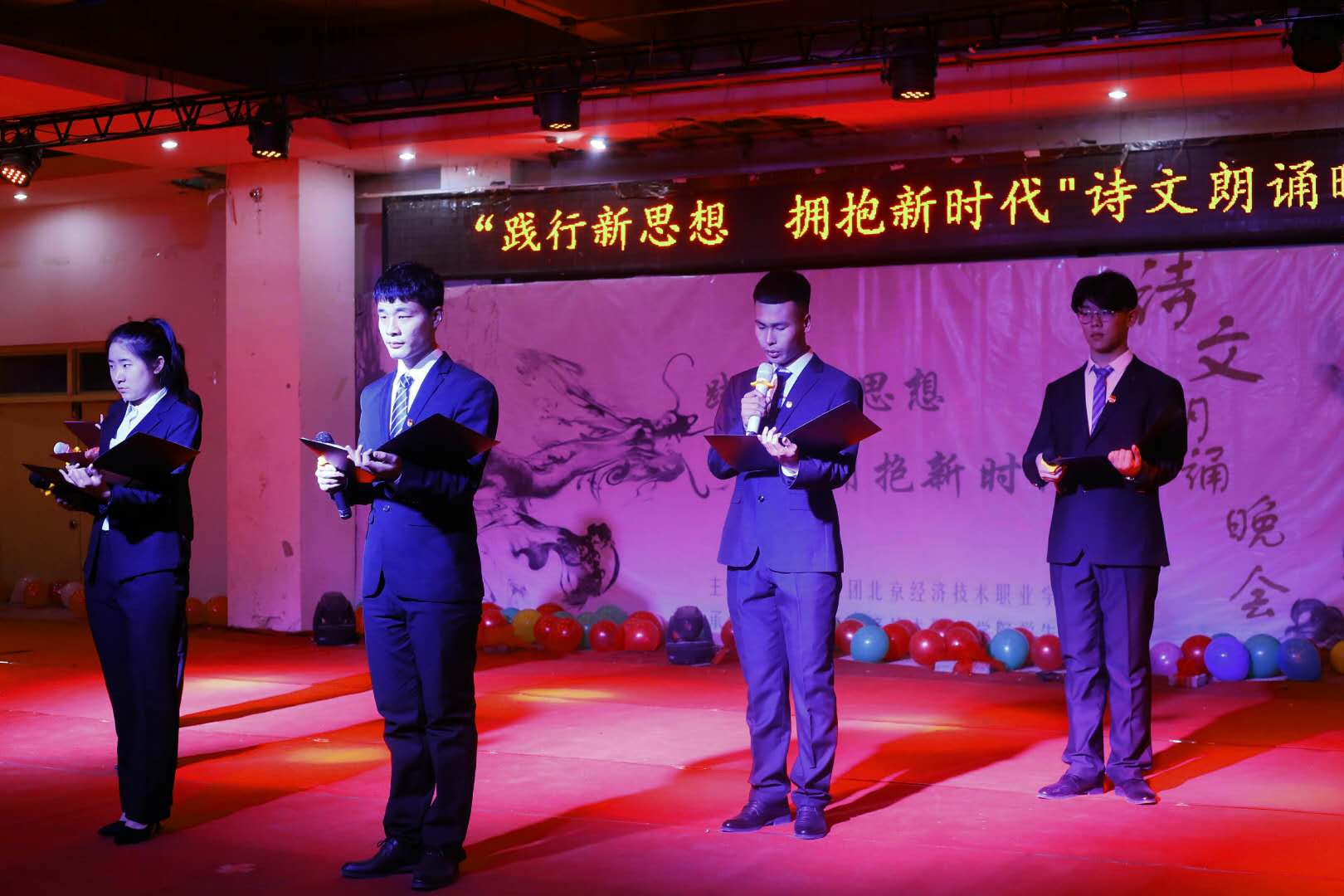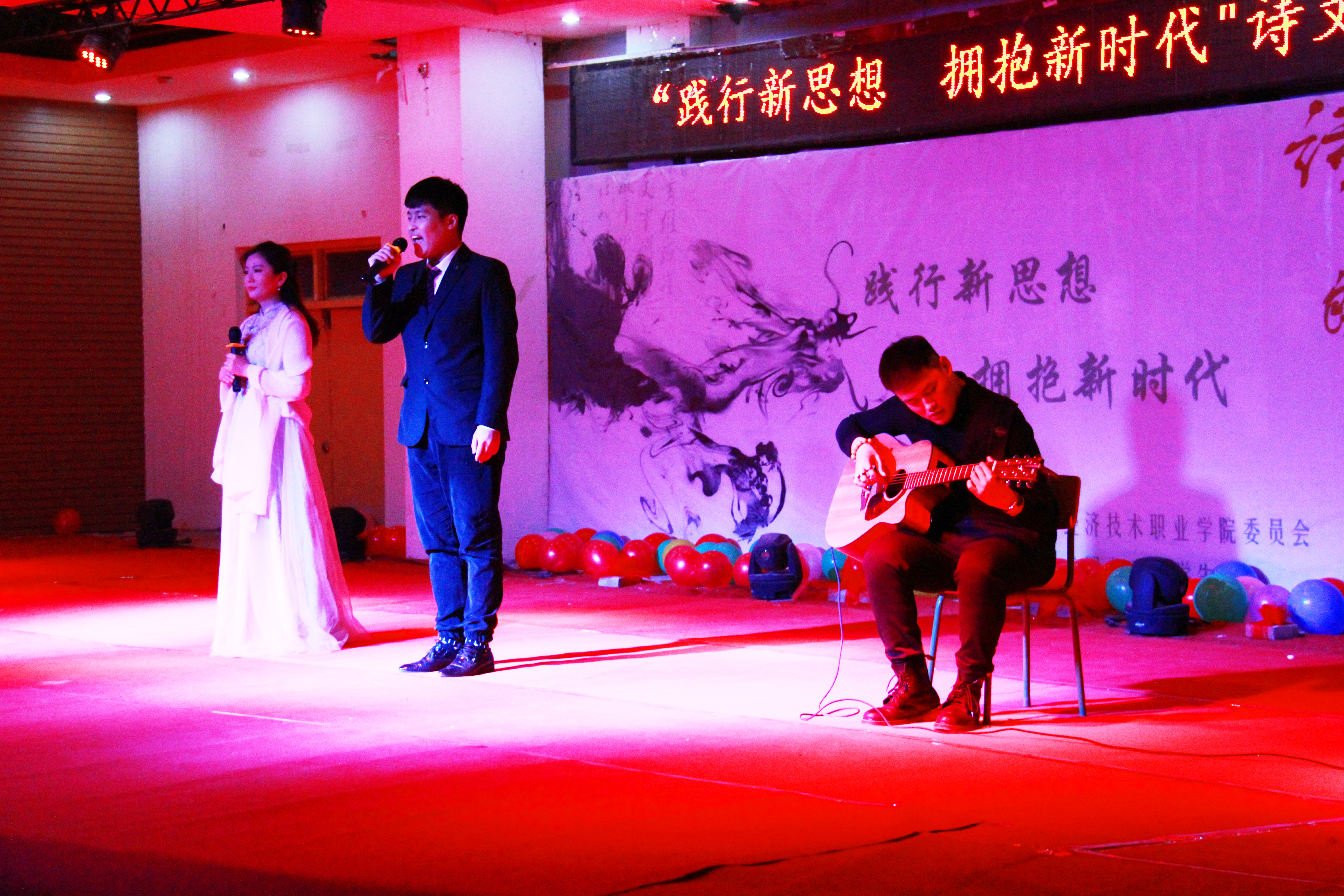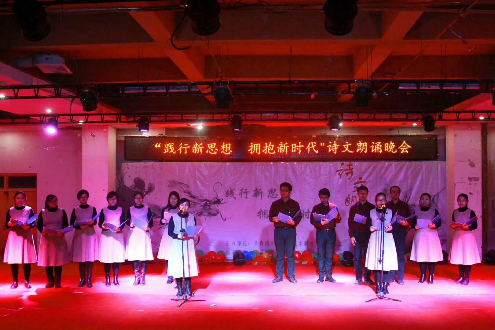 习近平总书记在十九大报告中指出:“青年兴则国家兴,青年强则国家强。青年一代有理想、有本领、有担当,国家就有前途,民族就有希望。中国梦是历史的、现实的,也是未来的;是我们这一代的,更是青年一代的。” 此次“践行新思想 拥抱新时代”主题诗文朗诵晚会积极响应了党的十九大正确领导,不负初心,牢记使命,更加彰显了我校师生朝气蓬勃的精神风貌,同时希望新的一年坚定信心,真抓实干,携手登攀,再创新的辉煌。