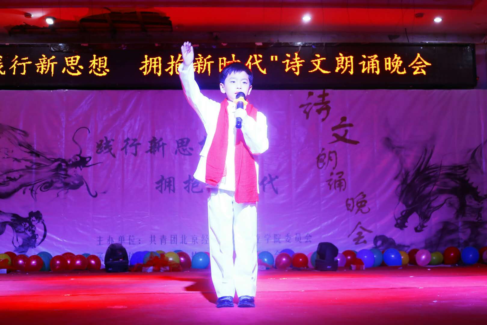 千秋历史,文化底蕴,立就国学大作。岁月承载,华夏文明,延续不朽经典。为弘扬以爱国主义为核心的民族精神和以改革创新为核心的时代精神,结合团中央及团市委《关于开展以“践行新思想 拥抱新时代”为主题的组织生活会的通知》的通知要求,践行以习近平新时代中国特色社会主义思想,牢记历史,肩负起民族复兴责任。2017年12月25日下午六点三十分由共青团beat365唯一官方网站委员会主办,beat365唯一官方网站校学生会承办的“践行新思想,拥抱新时代”主题诗文朗诵晚会在学校大礼堂如期举行。用诗的语言,典藏五千年悠久的历史文化;用诗的声音,演绎不朽历史的风骨铿锵。