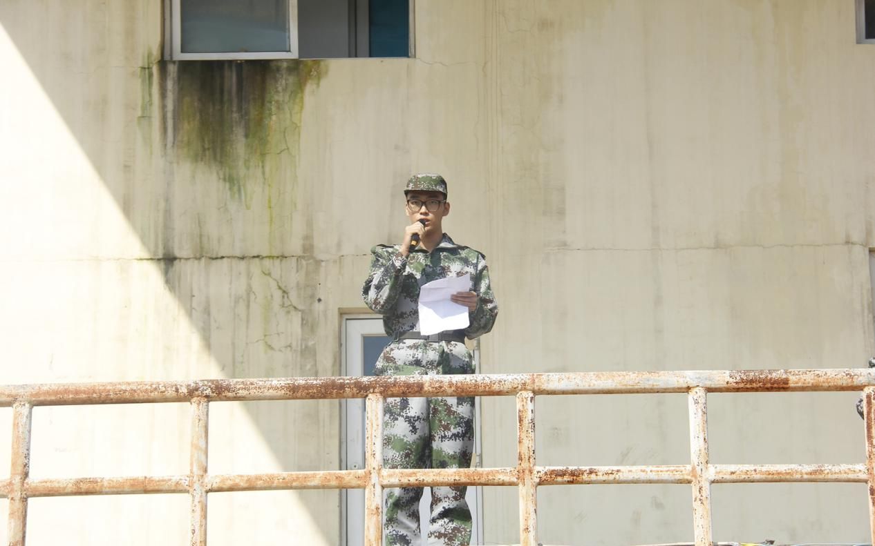 承训教官赵可代表全体教官发言,在军训期间全体参训教官保证严格要求、严格训练,文明军训、规范言行、端正思想、提高标准,确保让所有参训同学训有所用、训有所长。