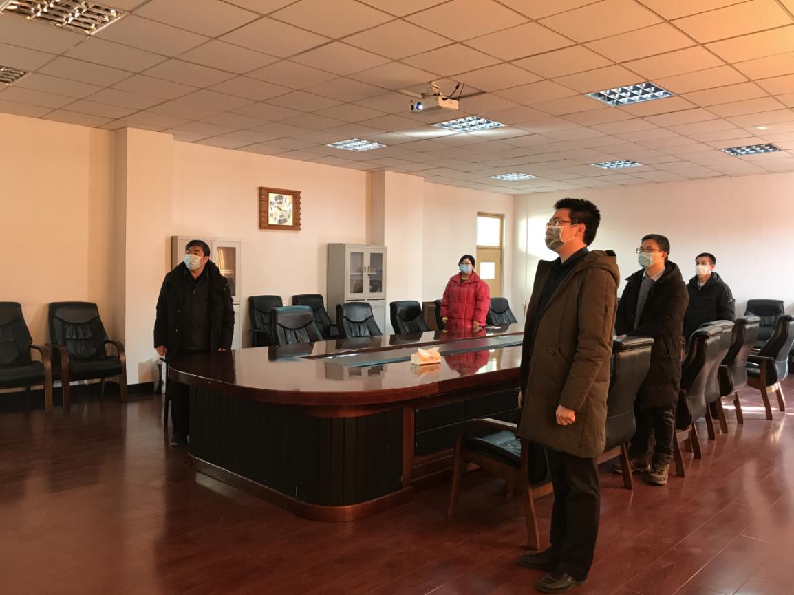 坚守在校内防疫一线的学校领导参加网络升旗仪式