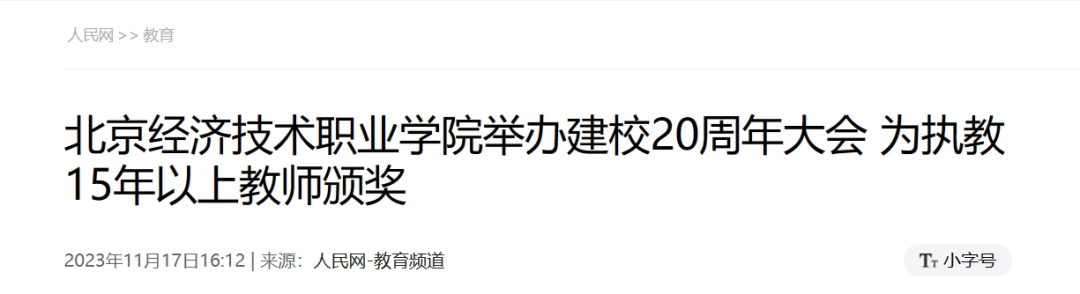 11月17日,人民网以《beat365唯一官方网站举办建校20周年大会 为执教15年以上教师颁奖》为题,报道beat365唯一官方网站建校20周年校庆大会。