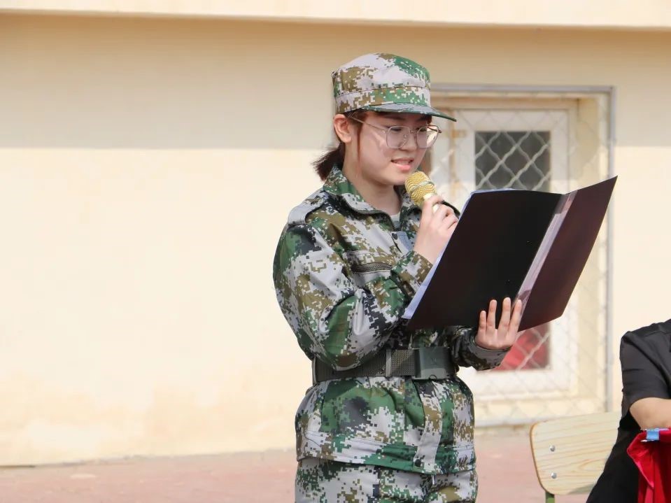 参训学生代表2021级信息工程学院韩贺轩同学代表全体参训学生发言,她代表所有参训学生做出庄严承诺。她表示:在军训中,我们会真正明白团结的含义,更懂得如何去服务同学,团结同学,号召同学,如何去争得荣誉,承担责任,我们将会得到全方位的历练和提升,以更加严谨的军人作风来严格要求自己。