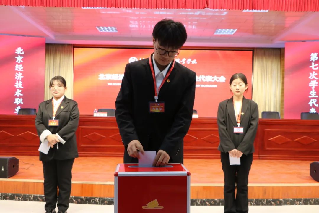 根据选举办法,对学院第七届学生会主席团成员和学生代表大会常任代表进行了选举。代表们认真填写好选票,郑重而有序地将选票放入投票箱。