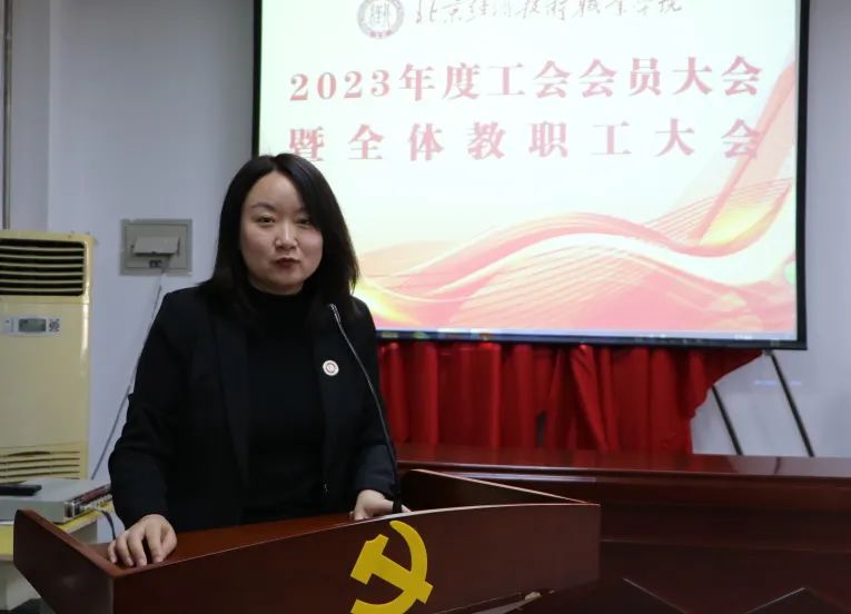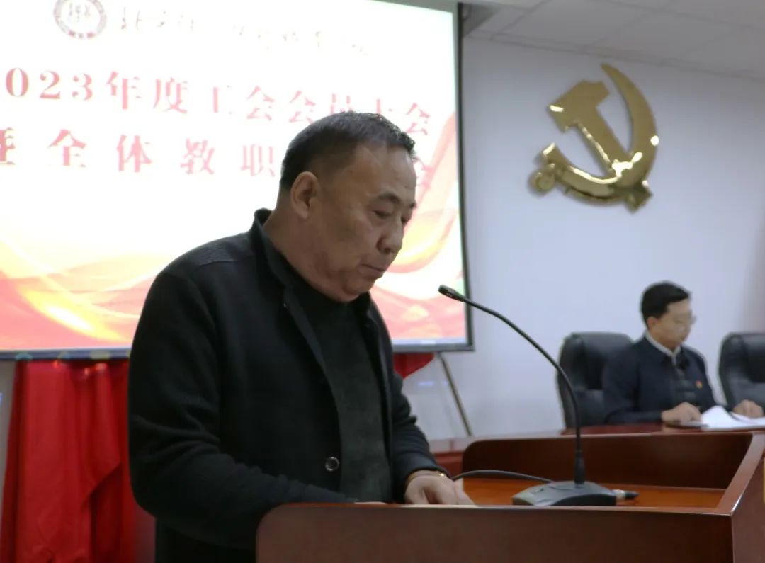 会议伊始,学院工会主席范福厚对学院2023年度工会工作作总结汇报。他表示2023年学院工会坚持以习近平新时代中国特色社会主义思想为指导,在学院各部门的大力支持下,在全体工会委员的努力下,在广大教职工的积极参与配合下,紧紧围绕学院中心工作,服务大局,全面履行工会职能,助力学院高质量内涵式发展,打牢教职工幸福成长之基。