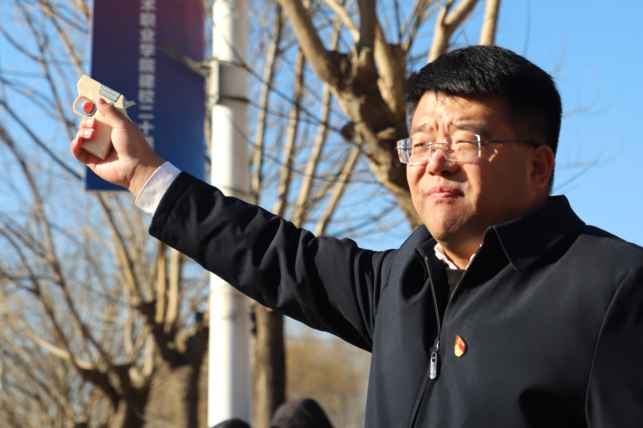 学生处处长焦岩发表讲话。他指出,爱国主义不仅是对祖国深深的热爱,更是将个人理想融入到国家发展大局中去的实际行动。他强调,希望每一位师生以此次升旗仪式为契机,继承和发扬一二•九运动的精神,把个人成长同国家命运紧密相连,以实际行动践行社会主义核心价值观,成为有理想、有本领、有担当的新时代青年,为实现中华民族伟大复兴的中国梦而努力奋斗!
