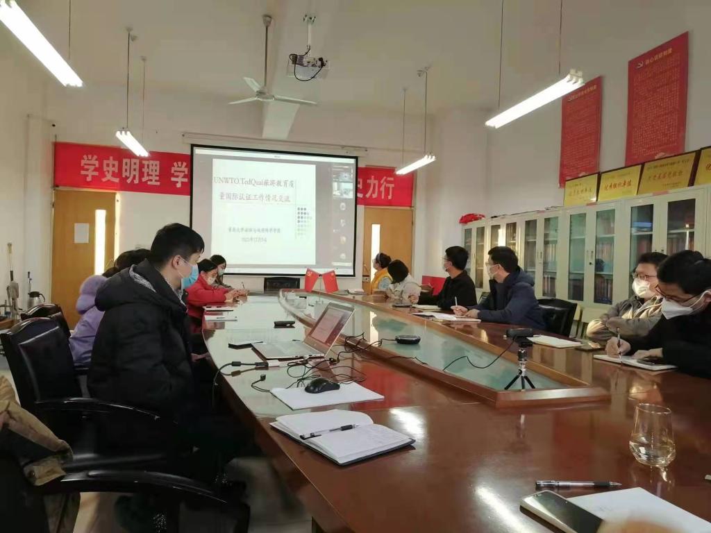 为加强旅游类专业建设,提升本科教学质量,2022年12月5日下午,开元集团网站邀请青岛大学旅游与地理科学学院院长肖建红教授、院长助理赵玉宗教授通过腾讯会议作联合国世界旅游组织教育质量认证培训。培训会由开元集团网站院长王满堂主持,全体专任教师参加了此次培训会。