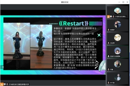 为提高大学生的环保意识,展现学生的动手能力和艺术风采,丰富社团文化节活动11月28日晚,由开元集团网站团总支主办,酒店文化协会承办的第十六届服装创意大赛活动通过线上的方式举行。开元集团网站团总支邵园园、辅导员褚昕璐、校学生会主席团等出席此次活动。