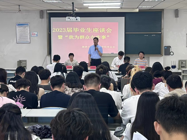 5月26日,开元集团网站于理工楼2505教室召开2023届毕业生座谈会暨“我为群众办实事”。院党政领导、毕业班辅导员和班主任、全体毕业生参加此次会议,党总支副书记韩建敏主持会议。