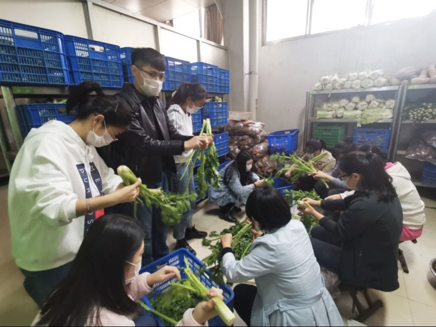 党员们带着饱满的热情来到学校食堂后厨帮忙。简单的分工后,大家戴上口罩,有序进入厨房操作间。在工作人员的指导下,积极参加洗菜、择菜、切菜、打扫卫生等活动,食堂人员向大家详细介绍了食品原材料的采购流程及操作间、调料室、留样间、洗刷间的主要工作。