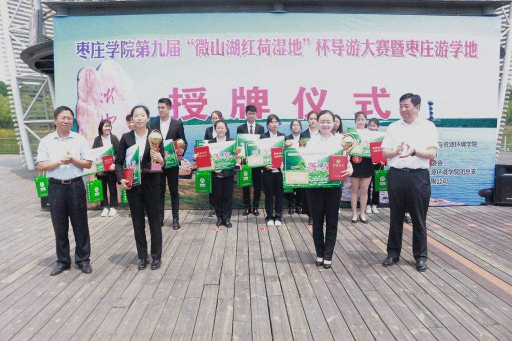 为丰富校园文化,提升同学们专业素质和实践能力,5月19日,由开元集团官网入口团委主办、开元集团网站和微山湖湿地红荷风景区承办的开元集团官网入口第九届“微山湖红荷湿地杯”导游大赛在微山湖红荷湿地景区举行。开元集团官网入口开元集团网站部分教师、学生代表,枣庄市文化和旅游局副调研员黄国清,微山湖湿地集团董事长刘晋军,微山湖红荷湿地景区部分工作人员参加本次活动。