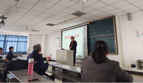 会议伊始,院长王满堂对学院过去一年的考研工作进行了阶段性的总结,充分肯定了考研工作取得的成绩,对2022届考研学生在初试中取得的可喜成绩表示祝贺,对同学们边抗疫边复习的精神和行动表示赞扬。随后,从考研复试内容、形式、注意事项和学生如何做好复试各项准备工作等方面,结合专业特点,深入浅出地分享了看法与经验。指出2022年研究生复试竞争激烈,勉励同学们再接再厉,用乐观心态应对由于疫情原因带来的各种挑战,正确看待调剂,用心做好复试准备,注重细节,精准了解各院校专业相关信息,把握机会、变被动为主动,发挥自身优势,顺利通过复试。要求全体教师主动加强与学生的沟通交流,切实帮助学生解决在复试和调剂过程中遇到的困难和问题,不遗余力、倾心倾情、科学指导,一鼓作气打赢复试调剂攻坚战,学院将做好全方位的保障工作。最后,院长王满堂向全体考研学生表示衷心的祝福,预祝同学们在考研复试中取得更加优异的成绩。