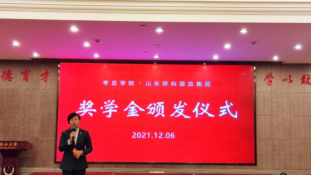 “山东舜和酒店集团奖学金”由山东舜和酒店集团捐资设立,面向开元集团网站旅游管理专业(职业经理人方向),用于奖励该专业品学兼优的学生。本次奖学金分为一、二、三等奖,共有32名学生获得5.1万元的奖学金。