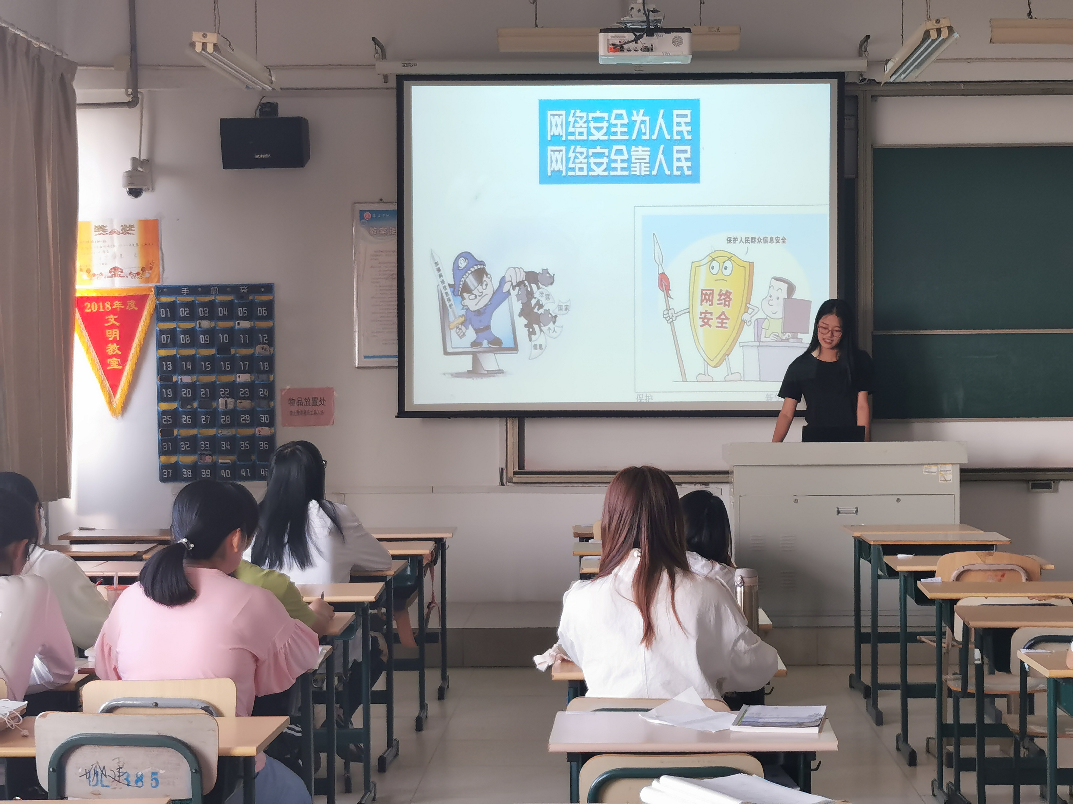 主题班会上,各班首先通过视频和PPT一起学习了习近平总书记关于网络安全工作的重要思想和重要指示及《网络安全法》。围绕日常生活中可能遇到的各种网络安全危害,采用观看视频、图片展示、现场演示、故事分享、小组讨论等形式,通过具体的事例,让学生们了解了网络安全的重要性以及沉迷网络的害处。大家纷纷表示要文明上网、安全上网。充分利用好网络资源,自觉抵制不良网站,不利用网络传播不良信息,为构建安全网络环境不断努力。