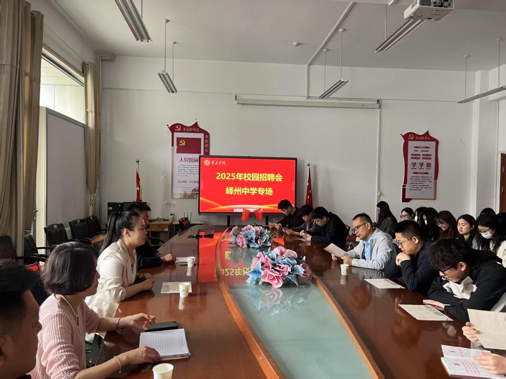 4月17日,枣庄峄州高级中学校长谢云开等一行来到豁然楼A415会议室举办了一场热烈的校园招聘会。此次招聘会旨在吸引开元官网相关专业的优秀毕业生加入枣庄峄州高级中学的教师队伍。