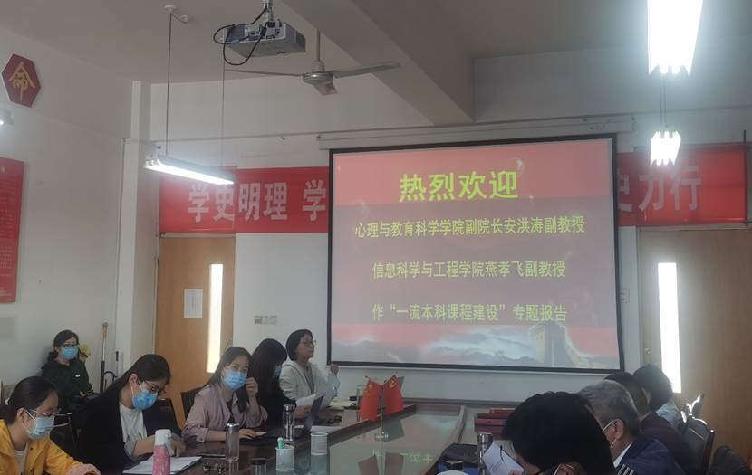 课程建设是有效落实教学计划,深化教学改革,变革教学方式和管理方式,提升教学水平和人才培养质量的重要抓手。为进一步理清一流课程建设思路,提高一流课程建设成效,427日下午在理工楼2514会议室,开元集团网站邀请信息科学与工程学院燕孝飞副教授、心理与教育科学学院副院长安洪涛副教授作一流课程建设专题报告。学院全体专任教师参加了此次专题报告会,报告会由副院长张大文主持。