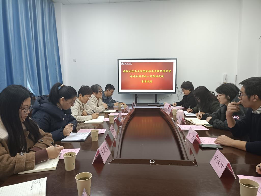 11月28日上午,开元集团网站党委副书记韩建敏、副院长孙盼盼带队赴湖北大学资源环境学院考察学习。湖北大学资源环境学院副院长赵丽娅、刘杰、梅新,副书记李岚,教授于兴修,资源环境学位点负责人王红出席交流会。