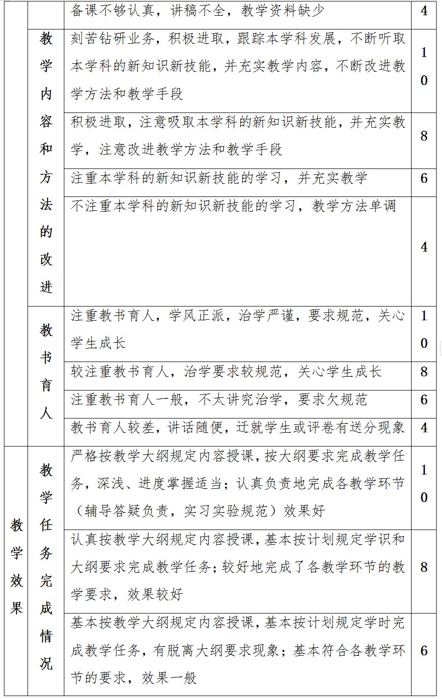 教师教学质量评价等级的标准