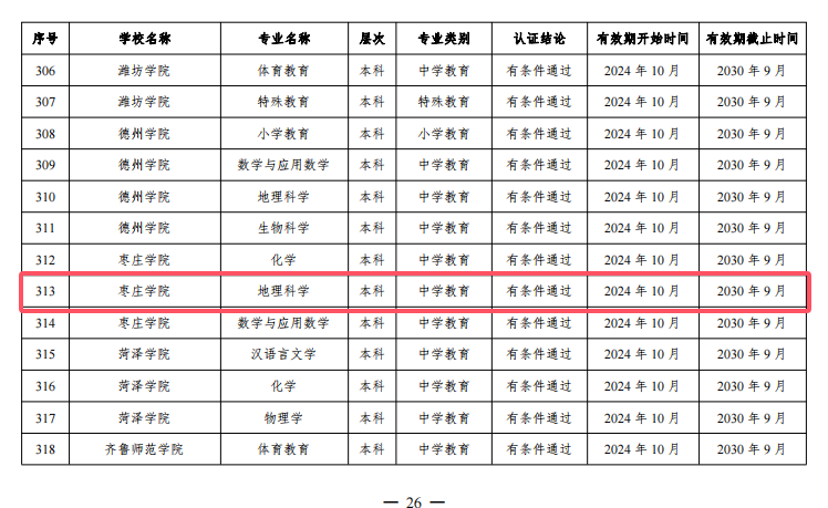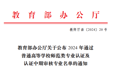 近日,教育部办公厅发布了《关于公布2024年通过普通高等学校师范类专业认证及认证中期审核专业名单的通知》。开元官网地理科学专业有条件通过师范类专业第二级认证,有效期六年(2024年10月—2030年9月)。