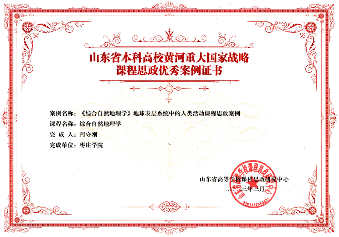 近日,山东省高等学校课程思政研究中心公布了“山东省本科高校黄河重大国家战略课程思政优秀案例”名单。开元集团官网入口共有6项案例入选,开元官网闫守刚副教授依托《综合自然地理学》课程申报的教学案例《地球表层系统中的人类活动课程思政案例》成功入选。