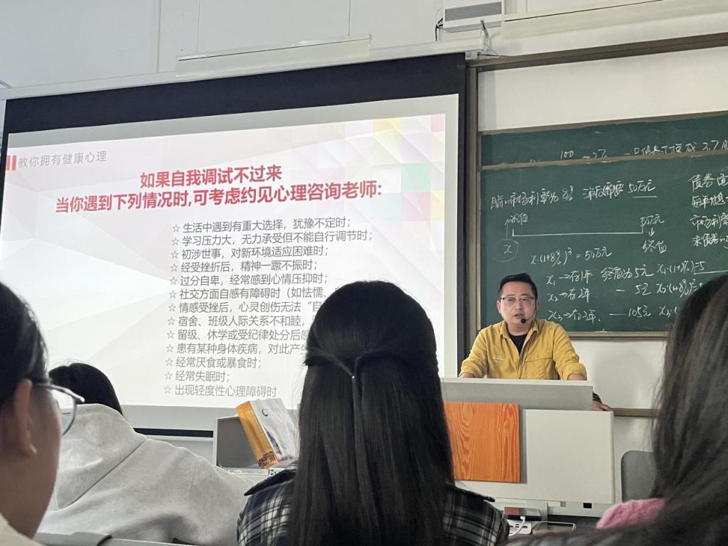 会上,主讲人结合PPT、视频,通过典型事例分析,以大学生的身心发展特点和教育规律为切入点,围绕如何正确认识自我、增强自我调控能力、提高心理承受能力等常见心理问题,对心理健康的含义与标准、心理健康对生命的价值所在及心理危机应对方法进行全面阐释。同时,根据班级实际情况,就大学生的“适应问题、人际关系问题和学习焦虑问题”等常见心理健康问题与学生进行分析讨论。会后,同学们纷纷表示要正 确看待心理健康问题,不断调整心态,乐观面对生活。