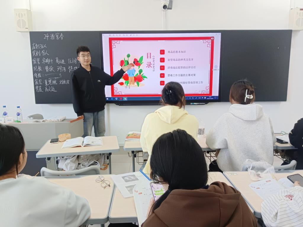 活动伊始,各班主讲人通过播放禁毒宣传视频、展示毒品图片等方式,结合具体案例,直观地介绍了毒品的种类、特征,深刻揭示了毒品对身心健康的严重摧残、对家庭的沉重打击以及对社会的极大危害。同学们纷纷表示,一定会对毒品保持“零容忍”态度,自觉做禁毒工作的模范遵守者和坚决捍卫者。