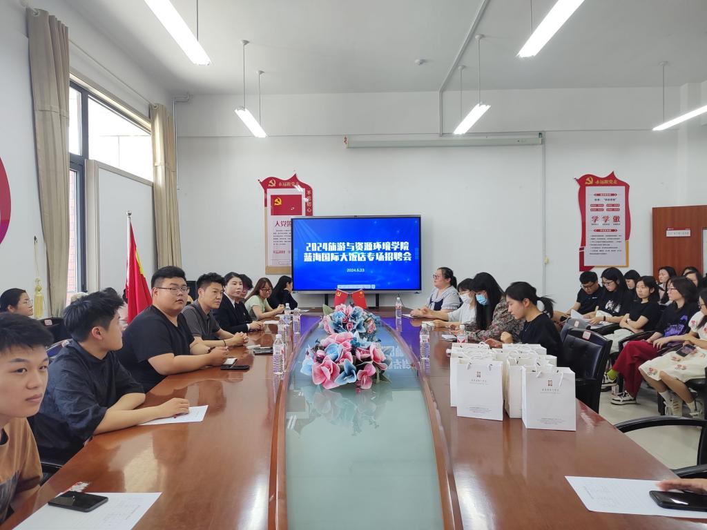 5月23日,开元集团网站在豁然楼A415成功举办蓝海国际大酒店毕业实习专场招聘会。本次会议由辅导员翟国琳主持,2020级酒店管理、旅游管理专业毕业生参加。