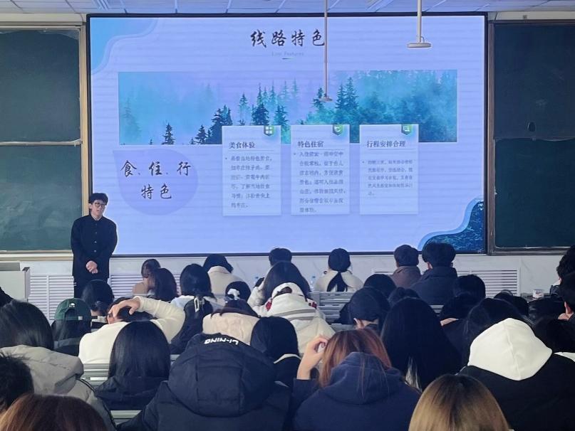 比赛现场,参赛选手们从研学线路设计总体描述、线路行程优势、线路设计理念、旅程消费标准等方面着手,以生动有趣的语言、精致的PPT演示将自主设计的研学路线规划娓娓道来,展现出卓越的知识应用能力。选手们语言逻辑清晰,不仅详细阐述研学线路的规划亮点,还结合各地的风土人情深挖研学旅游的文化价值,赢得在场观众的阵阵掌声。最后,评委们针对线路设计的可行性、合理性、安全性、主题与内容结合的紧密性等多方面进行评分,评选出一等奖2名、二等奖3名、三等奖4名以及优秀奖5名。