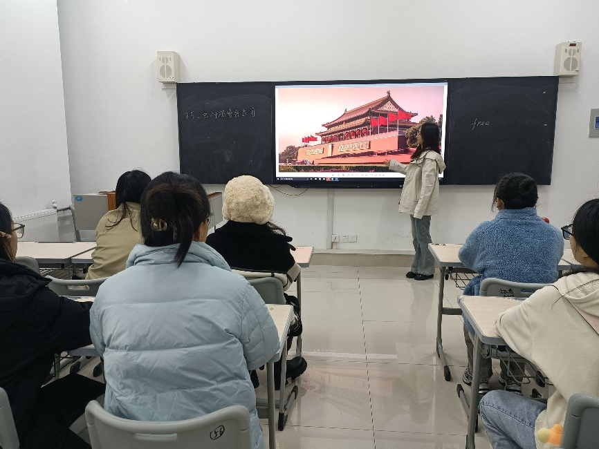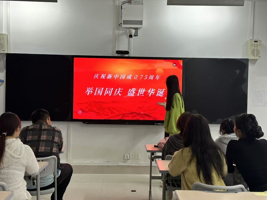 活动伊始,主讲人结合PPT从新中国成立时的百废待兴,到如今在国际舞台上的举足轻重,向同学们讲述新中国75年来的传奇故事。随后,主讲人从经济、科技和文化三个方面对新中国成立75年来的伟大成就展开全面且深入的介绍,激励同学们在新时代为祖国事业贡献自己的力量。主讲人强调,每一位同学都应切实地感受到新中国成立之初的艰辛与不易,增强对党和国家的认同感、归属感、自豪感。同学们专注聆听、积极讨论,共同探寻祖国繁荣昌盛背后的坚韧与智慧。