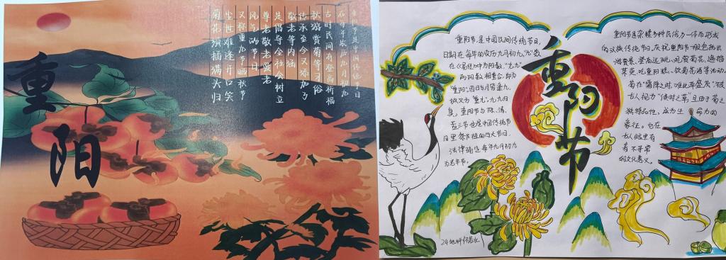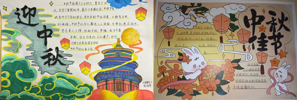 活动一经推出,同学们满怀热情,积极收集中秋节、重阳节等传统节日的相关资料,深入了解传统节日的习俗和寓意。活动中,同学们充分发挥创造力,通过图文的设计与排版,将对传统节日的理解和想法融入手抄报作品中,绘制出一幅幅色彩丰富、文字介绍详实的手抄报作品,生动地展现出中国传统节日的价值底蕴和中国文化传承与发展的独特魅力。