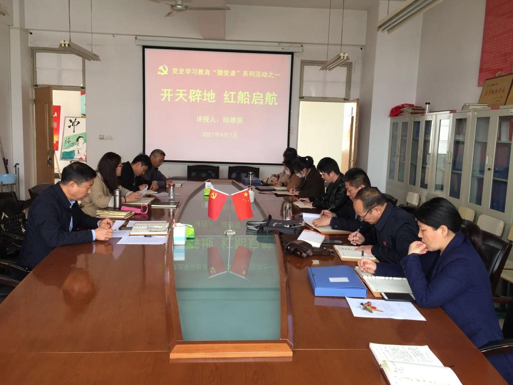 4月7日下午,开元集团网站党总支教工第一党支部在党员活动室开展学党史“微党课”活动。第一讲由学院党总支书记陆德国以《开天辟地、红船启航》为题,从“一大”的历史背景、成立的经过及历史意义等方面逐条讲述。